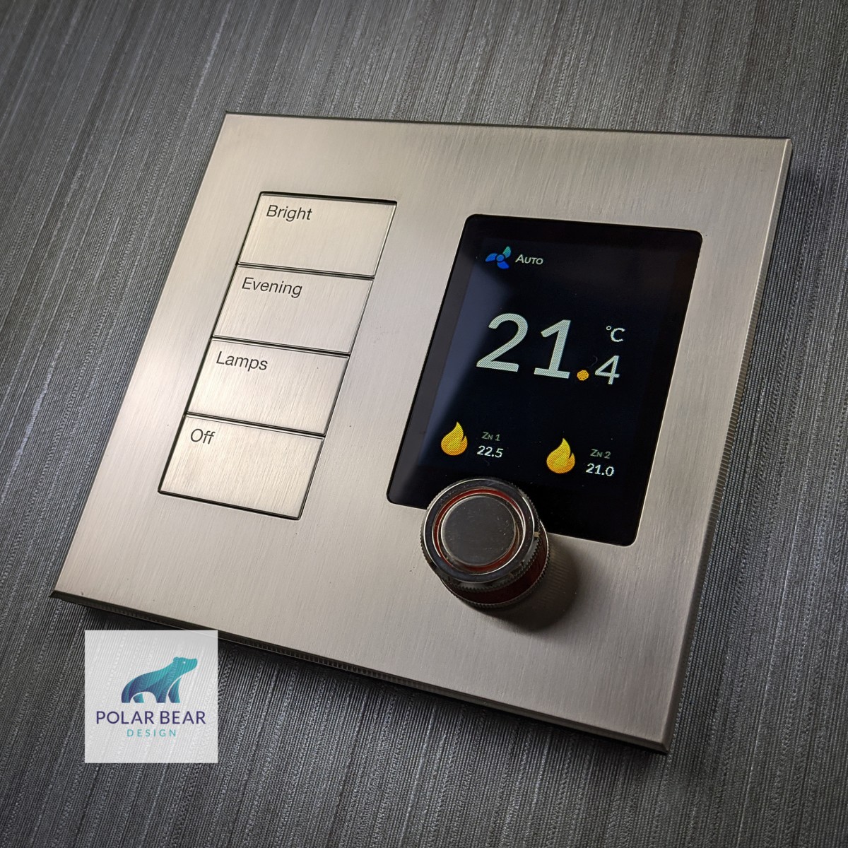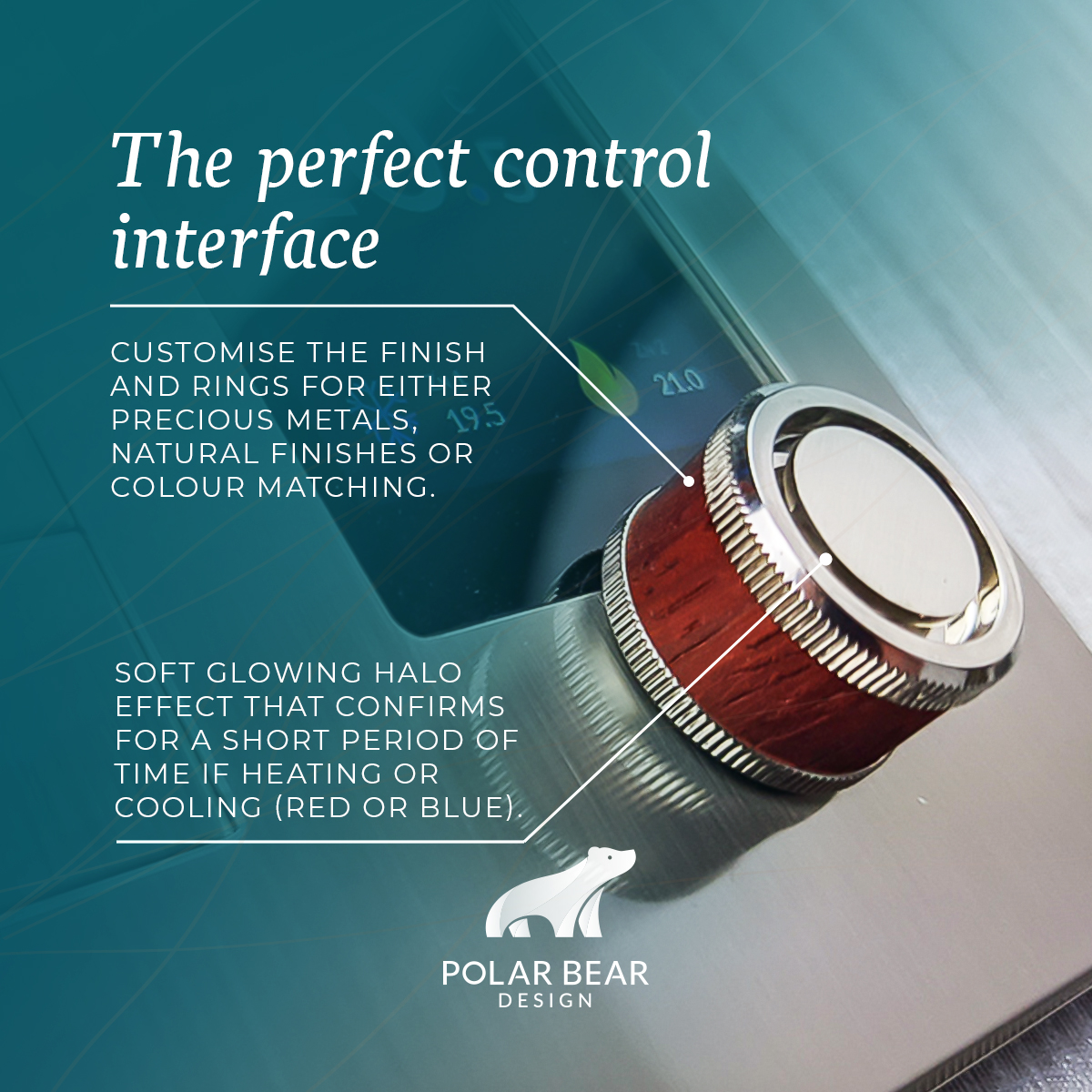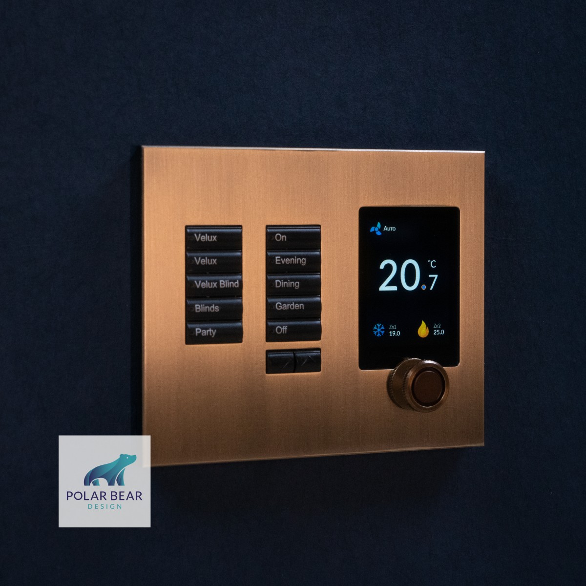 Technology has matured to a stage where control has grown beyond touch screens. Polar Bear Design believes that they can blend form and function with a range of phenomenally powerful and elegant thermostats that can be combined with lighting controls and offer highly customisable luxury finishes. The Zentium pro thermostat with its digital crown, offers a user interface that has a traditional approach but is underpinned with modern hardware and a beautiful high resolution colour screen. Not only is this thermostat incredibly aesthetically pleasing, the Zentium pro thermostat is capable of directly controlling both air conditioning and heating without the need for overly complex controller systems that need to be programmed by costly engineers.