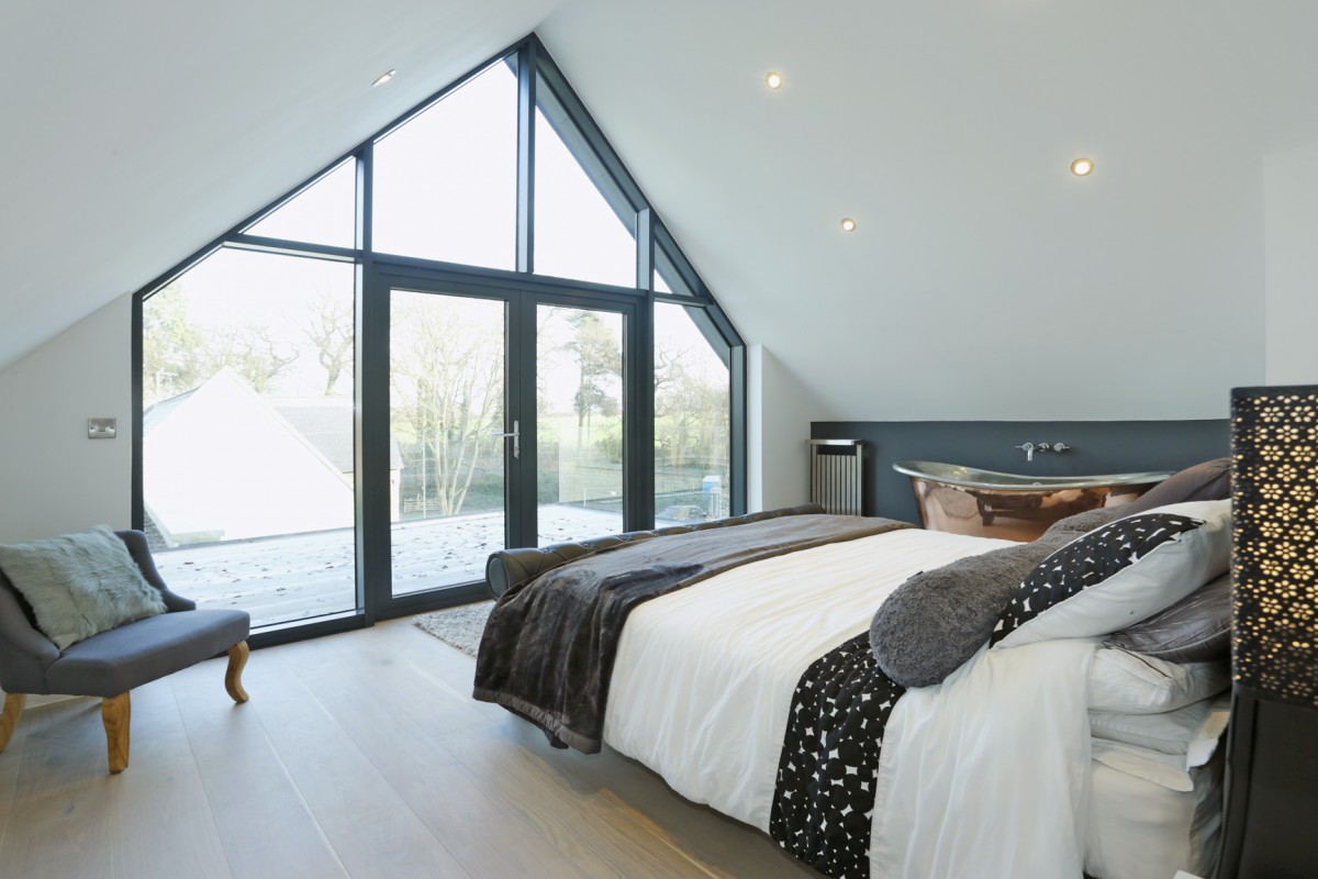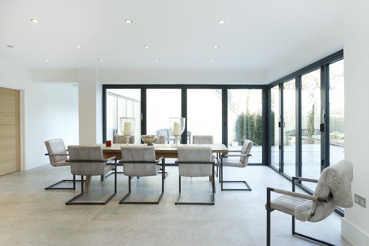 The design focus was to create a feeling of space. To do this, HSSP used large sections of glazing, with a full height picture window at the front of the home. The use of glass created a spacious feel and provided impressive views of the beautiful rural surrounds. A dual aspect kitchen with a large eating area was designed to spill out on the southern courtyard with double bi-folding doors creating a seamless opening to the garden, and boosting the feeling of space.