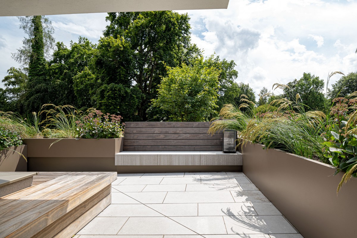 In a high class residential area, a large volume residence had to be constructed on a relatively small site. Located next to a sizeable outdoor pool, there was very little space for a garden. Therefore, a decision was made to create a rooftop garden to closely align with the concept of a zero-seal house, meaning sealed areas are given back to nature on the rooftop.
