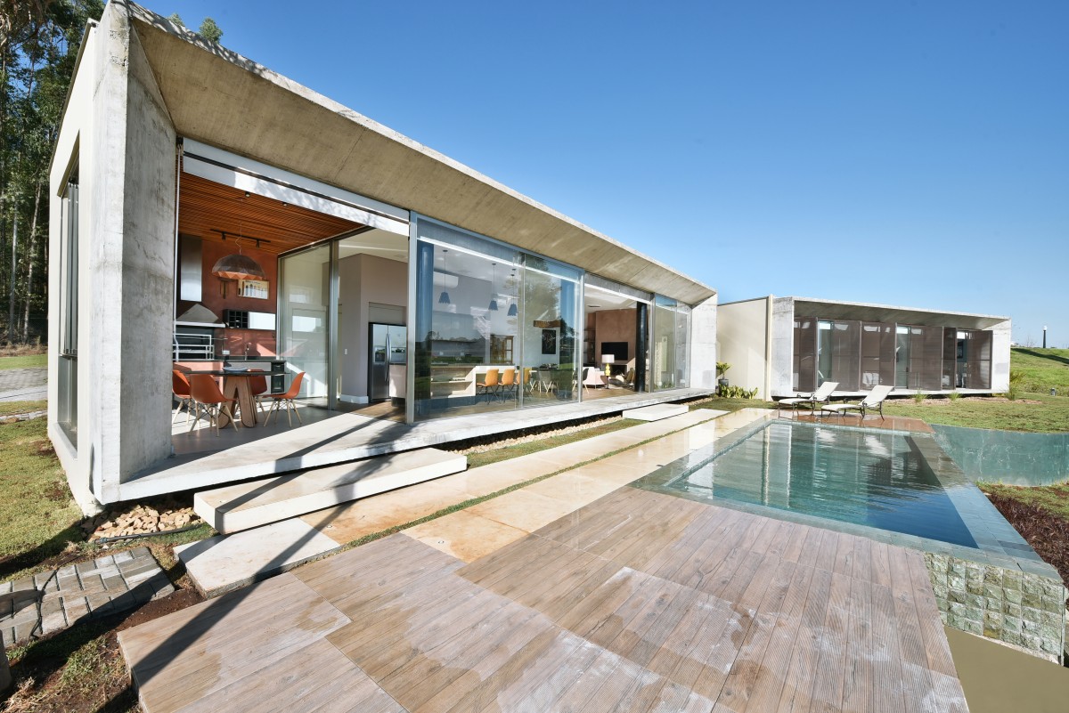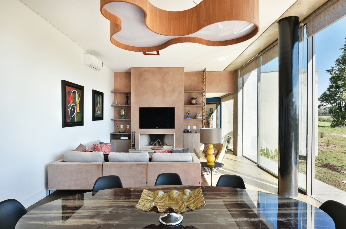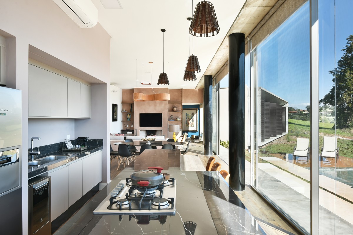 With an open concept, which explores construction possibilities and different materials, interior designer Marcela Rocca developed a project for her clients to share moments of leisure, with comfort and complete disconnection from the outside world, creating affective memories surrounded by nature.